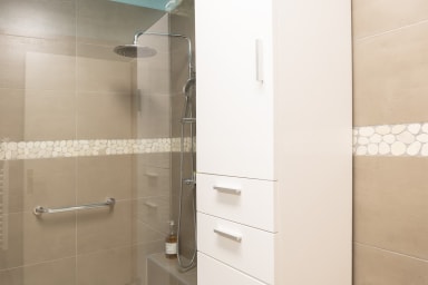 Modernes Badezimmer mit Dusche 🚿 und separatem WC.