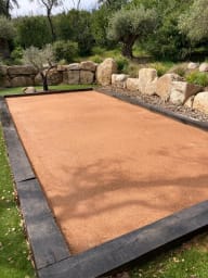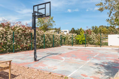 - Außergewöhnliche Außenbereiche: beheizter Pool, Poolhaus, Ruhebereiche ,Sportplätze (Fußball, Basketball, Boccia) und Garten mit Bäumen
