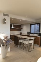 The fully equipped, modern and functional kitchen has a central island and complete services (oven, microwave, dishwasher, food processor, Nespresso machine ...). An adjoining cellar with laundry room and storage space completes this space.