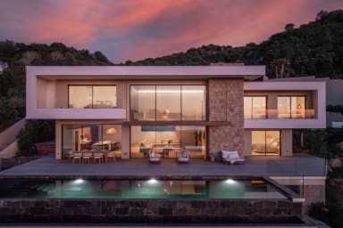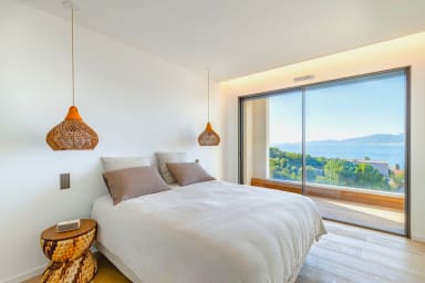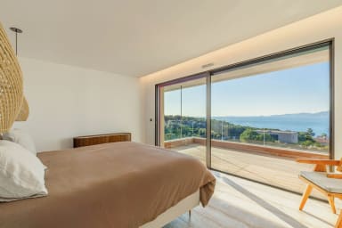 At the top of a hill, close to Porticcio, thought as a luxury refuge, the exceptional villa MAAMI will seduce you with its elegant interior with warm wooded lines sublimated by a mirror infinity pool. This prestigious villa facing the sea and the Corsican reliefs, guarantees a sweet break in southern Corsica.