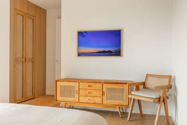 Bedroom 1: queen size bed 160 * 200 (SIMMONS brand premium bedding), shower room with toilet, a GHD HELIOS hairdryer, Samsung tv, air conditioning, dressing room, terrace.