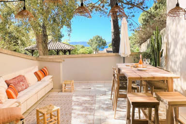 Escape to this elegant semi-detached villa in the "chic Mediterranean" style, ideally located in the heart of the prestigious Cala Rossa estate, in Lecci, in Southern Corsica. Just 200 meters from the private beach of Cala Rossa, this property offers a peaceful and refined setting.