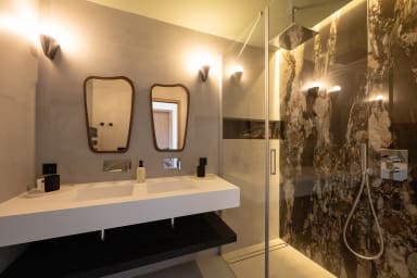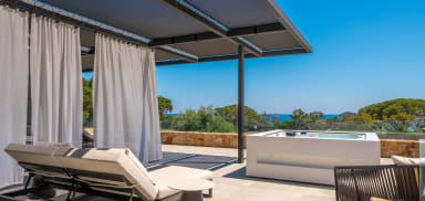 Autour de la piscine et sur les différentes terrasses, vous profiterez de 8 bains de soleil, de 2 grands beds, de nombreux transats et d’espaces lounge aménagés, parfaits pour savourer les longues journées estivales.