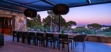 Les espaces de réception, vastes et lumineux, à l’intérieur comme à l’extérieur, offrent un cadre privilégié pour partager repas et moments conviviaux en toutes saisons, alliant élégance et convivialité.