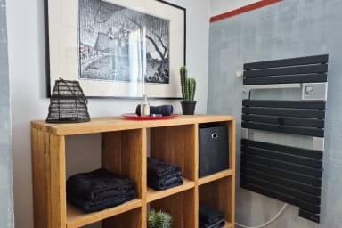 - un grande ambiente principale con: un soggiorno con TV e divano, un angolo cucina/sala da pranzo completamente attrezzato: piastre in vetroceramica, forno a microonde, forno, lavastoviglie, lavatrice, macchina da caffè Nespresso.