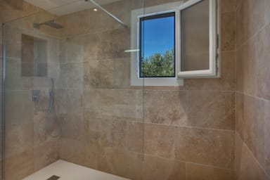 La villa ha 260 m2 su 2 livelli, con 2 terrazze da 30m2 + piscina in un giardino privato di 1200m2.