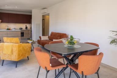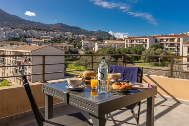 La distribuzione degli spazi e le dotazioni dell’appartamento lo rendono il luogo ideale per un soggiorno in coppia, in famiglia o con amici, sia per una settimana di puro relax che per una vacanza itinerante in Balagne.